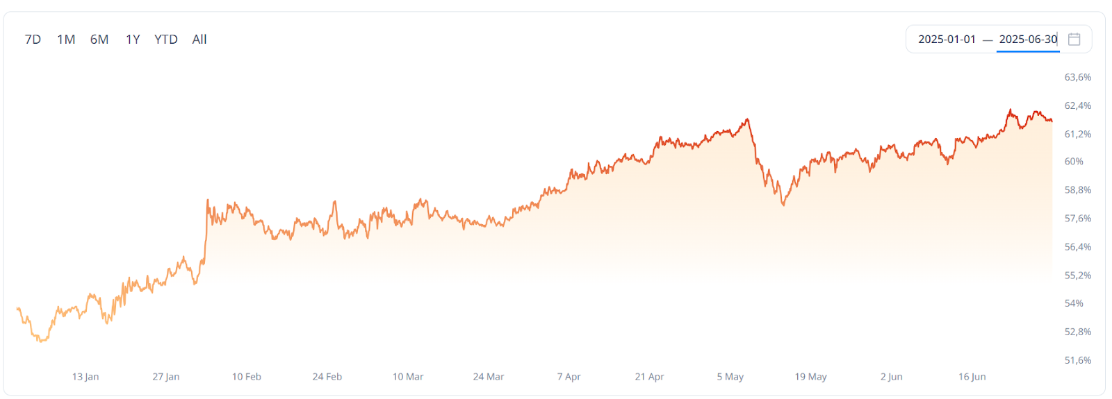 Yet an important sector - Real World Assets (RWAs) is at the intersection of stablecoins and altcoins also show significant growth in the H1 2025.